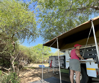We travel with a rooftop tent, so our priority was to find a shaded area with a tree high enough for our setup. We also like to camp near the fence, always hoping to spot hyenas or other nocturnal wildlife walking past at night.